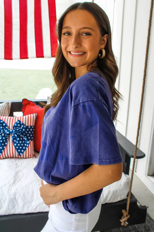 Navy Blue Ribbed Contrast Leopard Patchwork Short Sleeve Top