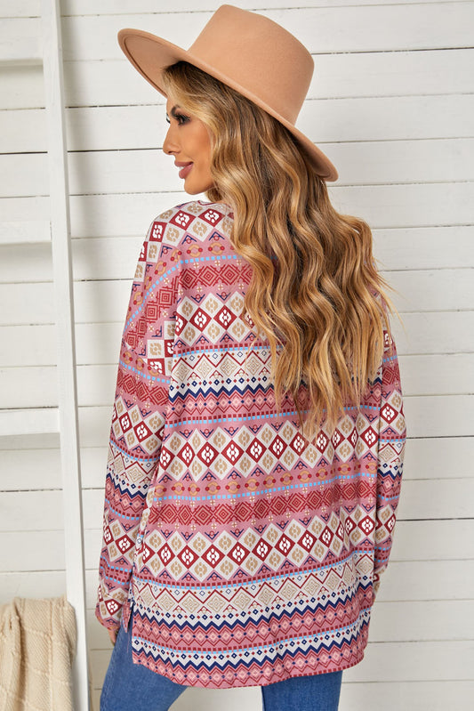 Fiery Red Geometric Plaid Print Pocketed Shacket