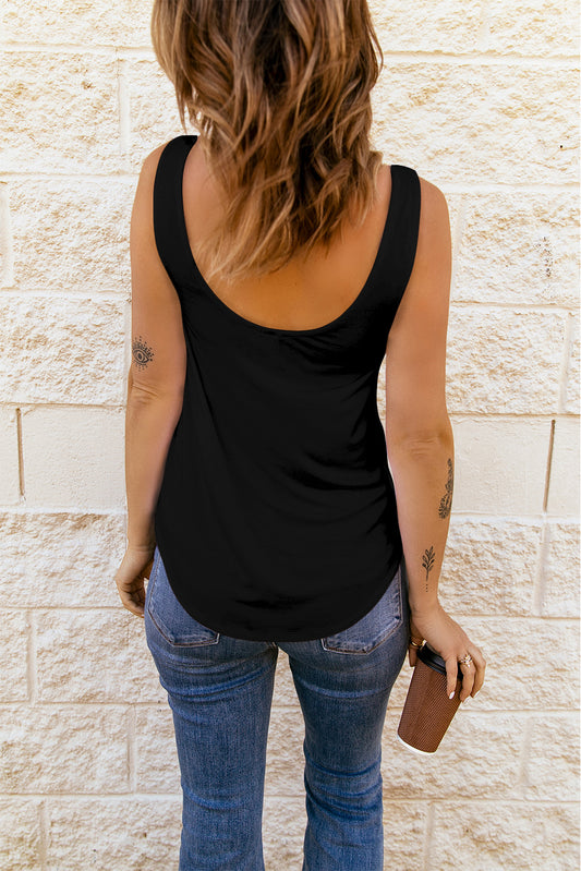 Solid U Neck Criss Cross Tank Top