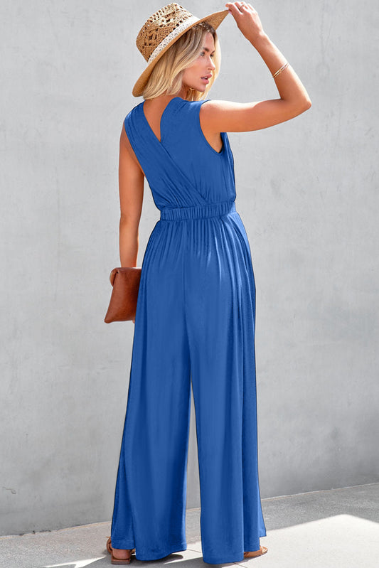 Black Wrap V Neck Sleeveless High Waist Jumpsuit