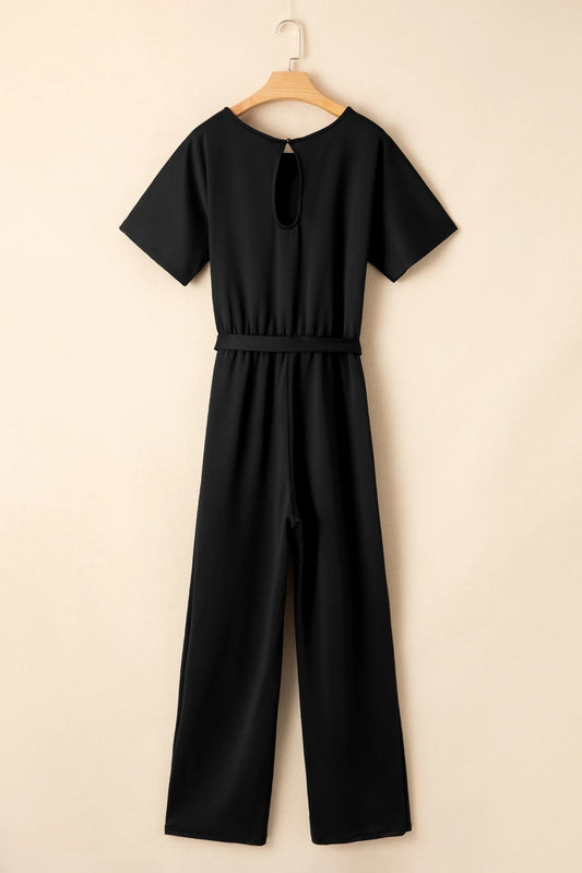 Black Dolman Sleeve Belted Straight Leg Jumpsuit