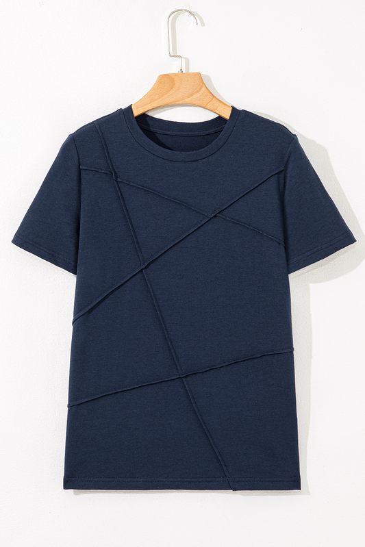 Solid Color Toothpick Stripe Round Neck T Shirt