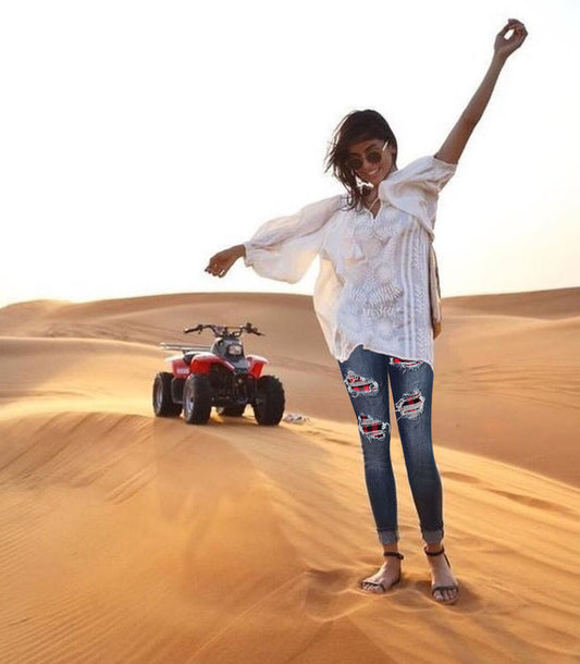 Embroidery Patterned Knotted Straps V Neck Tank Top