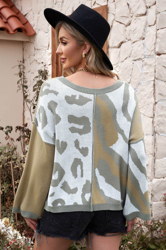 Striped Colorblock V Neck Long Sleeve Knitted Sweater