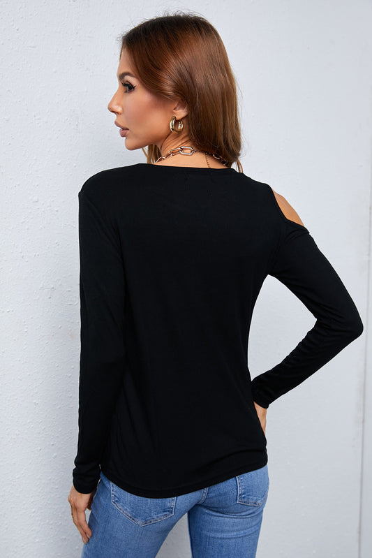 Black Fishnet Splicing Strappy Cutout Shoulder Sleeve Top