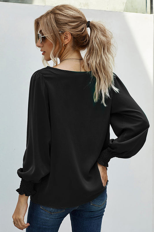 Apricot Floral Lace Ruched Bubble Sleeve Top