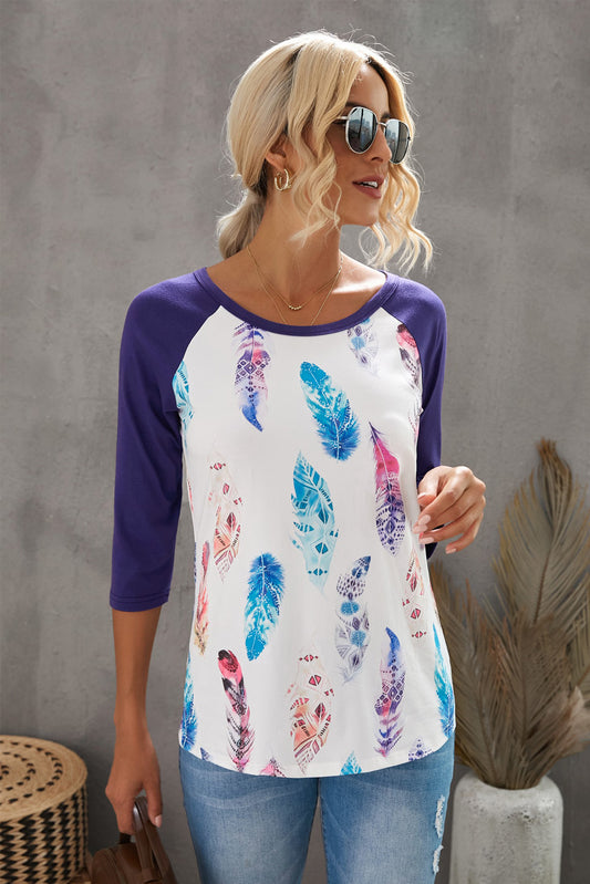 Sky Blue Paisley Print Wide Sleeves Loose Blouse