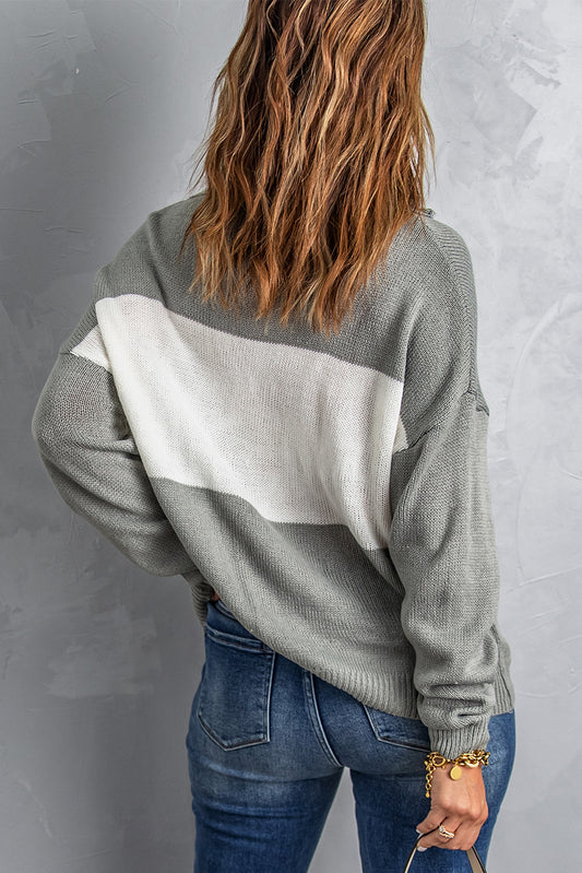Gray Colorblock Turtleneck Loose Knitted Sweater