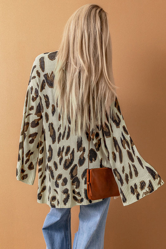 Leopard Print Bell Sleeve Open Front Knitted Cardigan