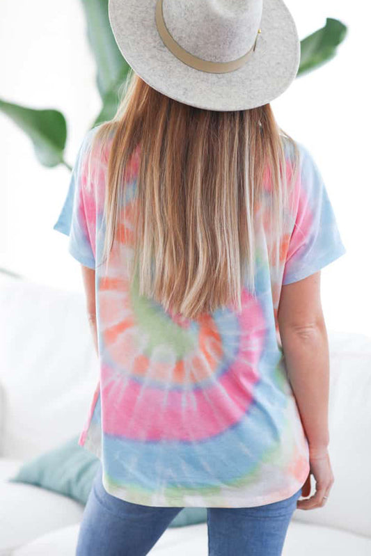 Tie-dye Short Sleeve V Neck T-Shirt