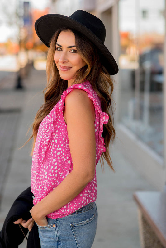 Rose Leopard Ruffle Trim Tank Top