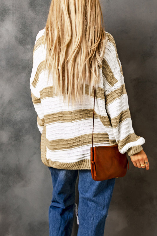 Khaki Color Block Open Front Knitted Cardigan