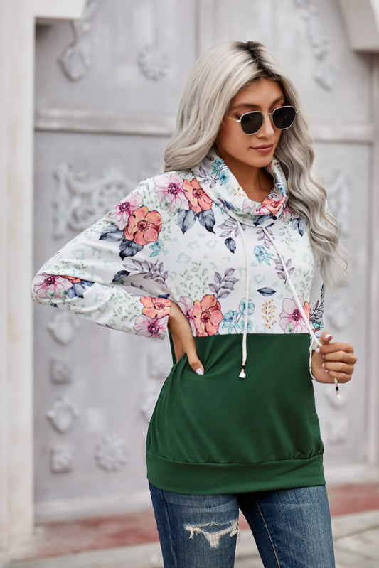 Green Wild Thing Patchwork Cowl Neck Sweatshirt