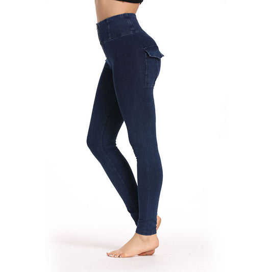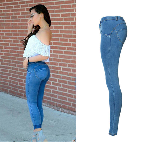 Light Blue Star Print Light Wash Drawstring Elastic Waistband Wide Leg Jeans