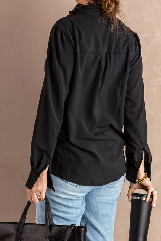 Solid Color Lace Frilled Trims Long Sleeve Shirt