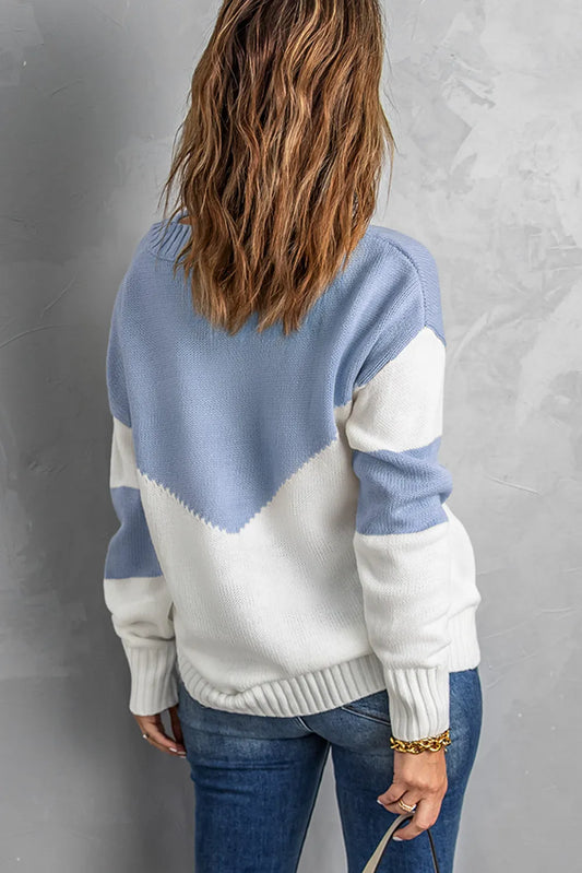 Colorblock V Neck Casual Sweater
