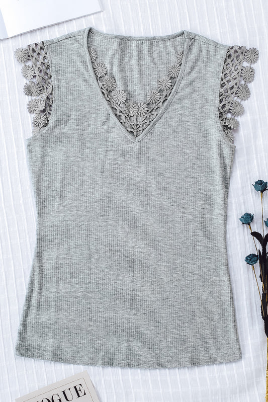 Lace Crochet Ribbed V Neck Tank Top