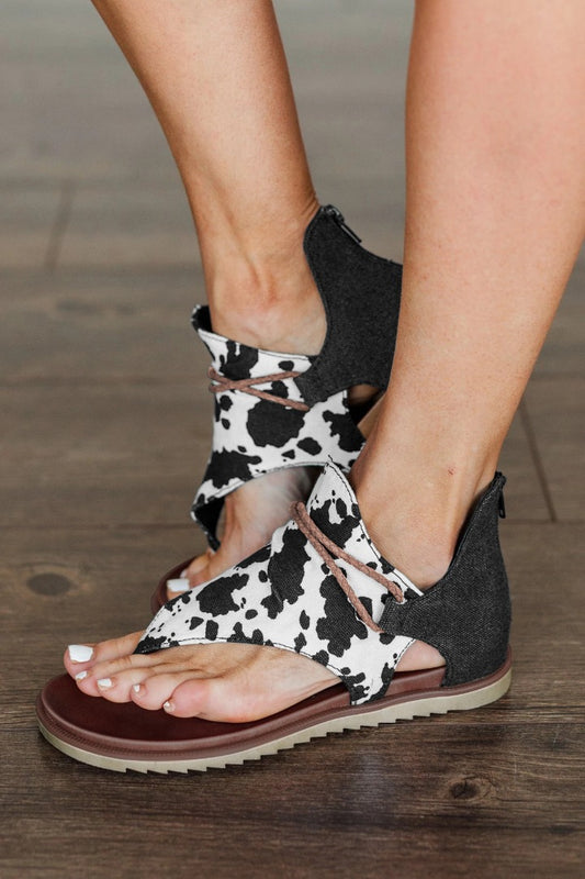 Cow Print Flip-Flops Hemp Rope Zipper Sandal