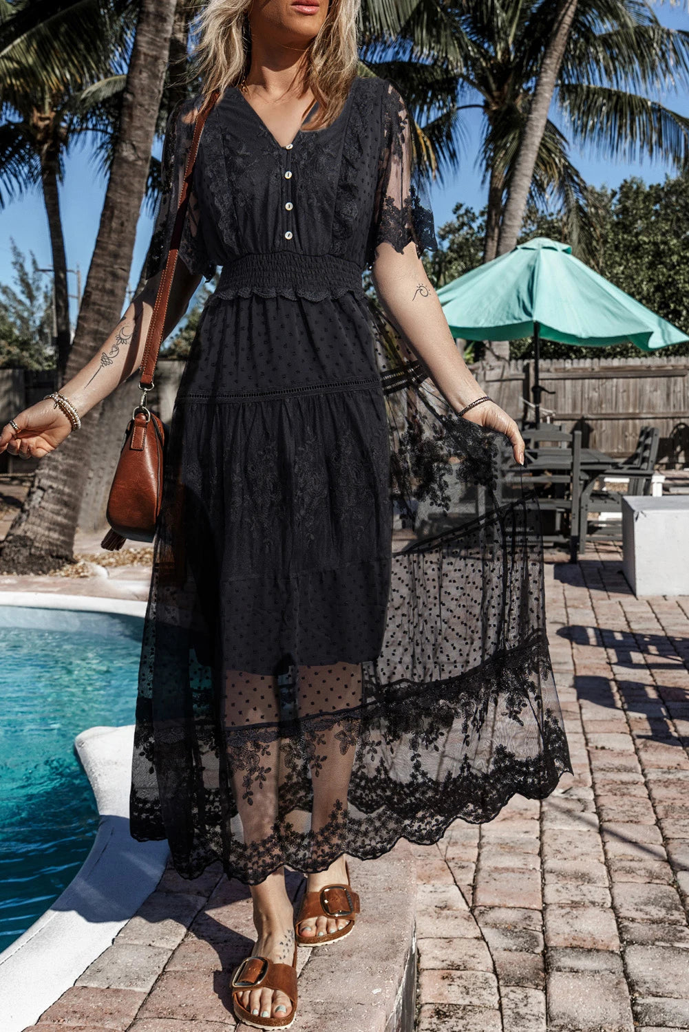 Black Dotty Lace Mesh Flowy Maxi Dress