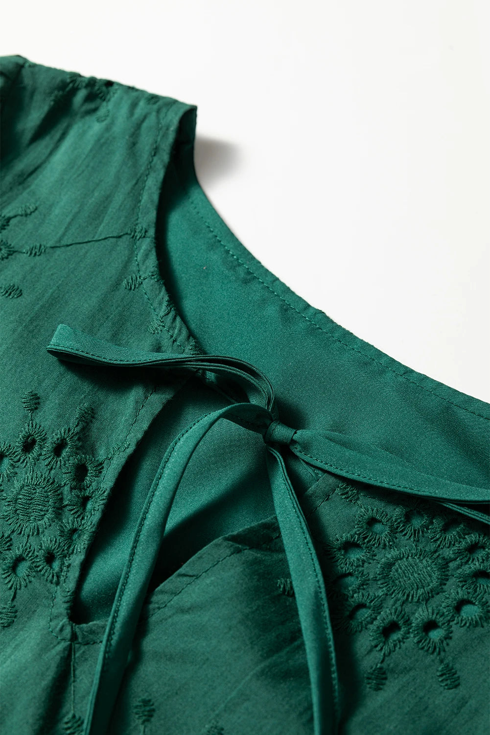 - Features delicate embroidered eyelet details for a feminine silhouette.