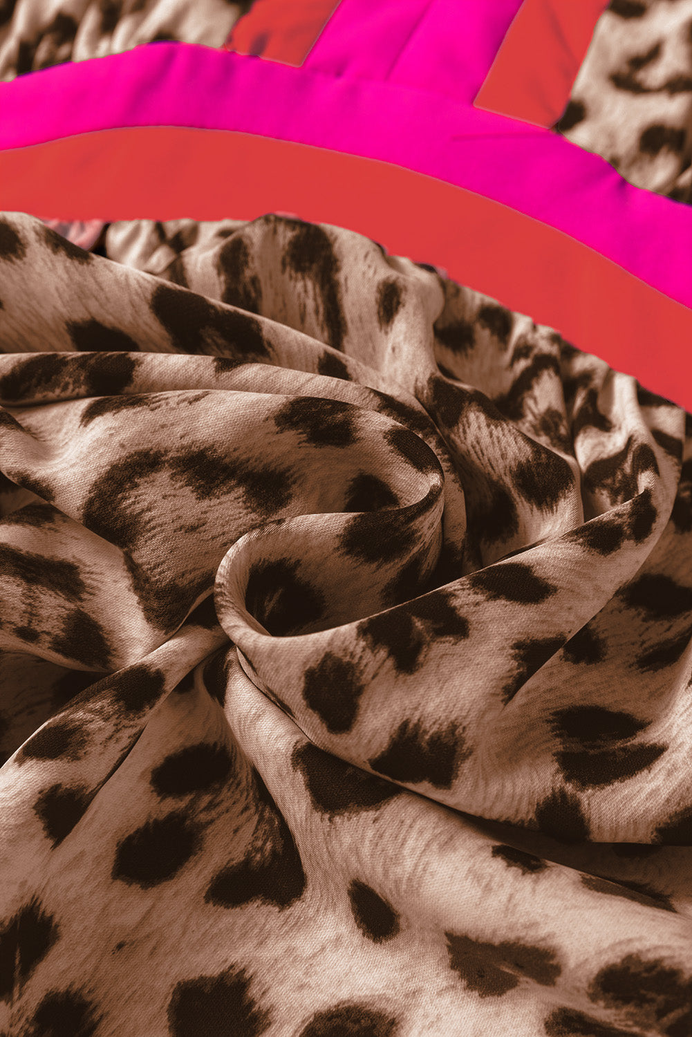 Brown Leopard Color Block V Neck Loose Fit Maxi Dress