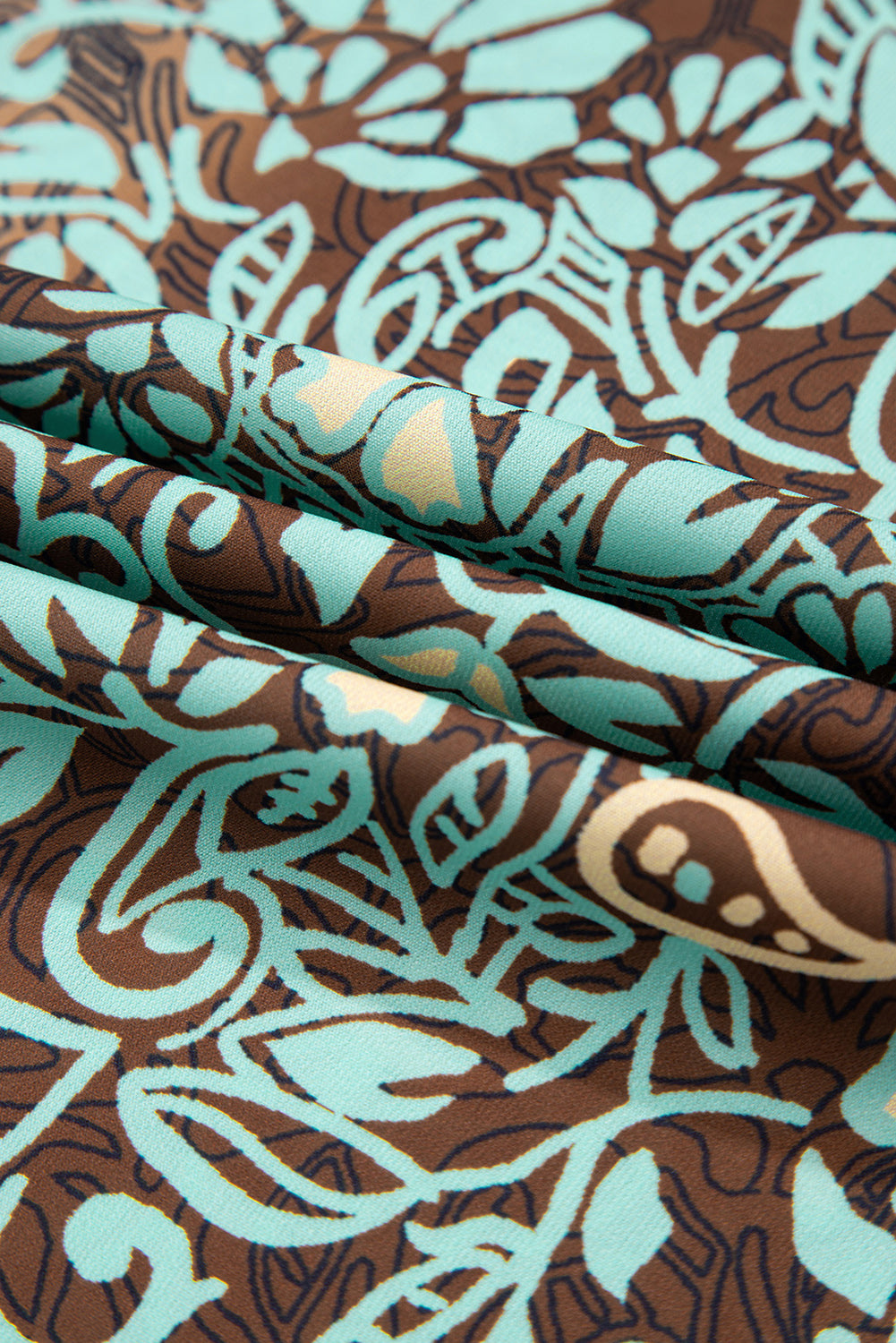 Green Floral Print V Neck Ruffled Trim Backless Tassel Waist Maxi Dress