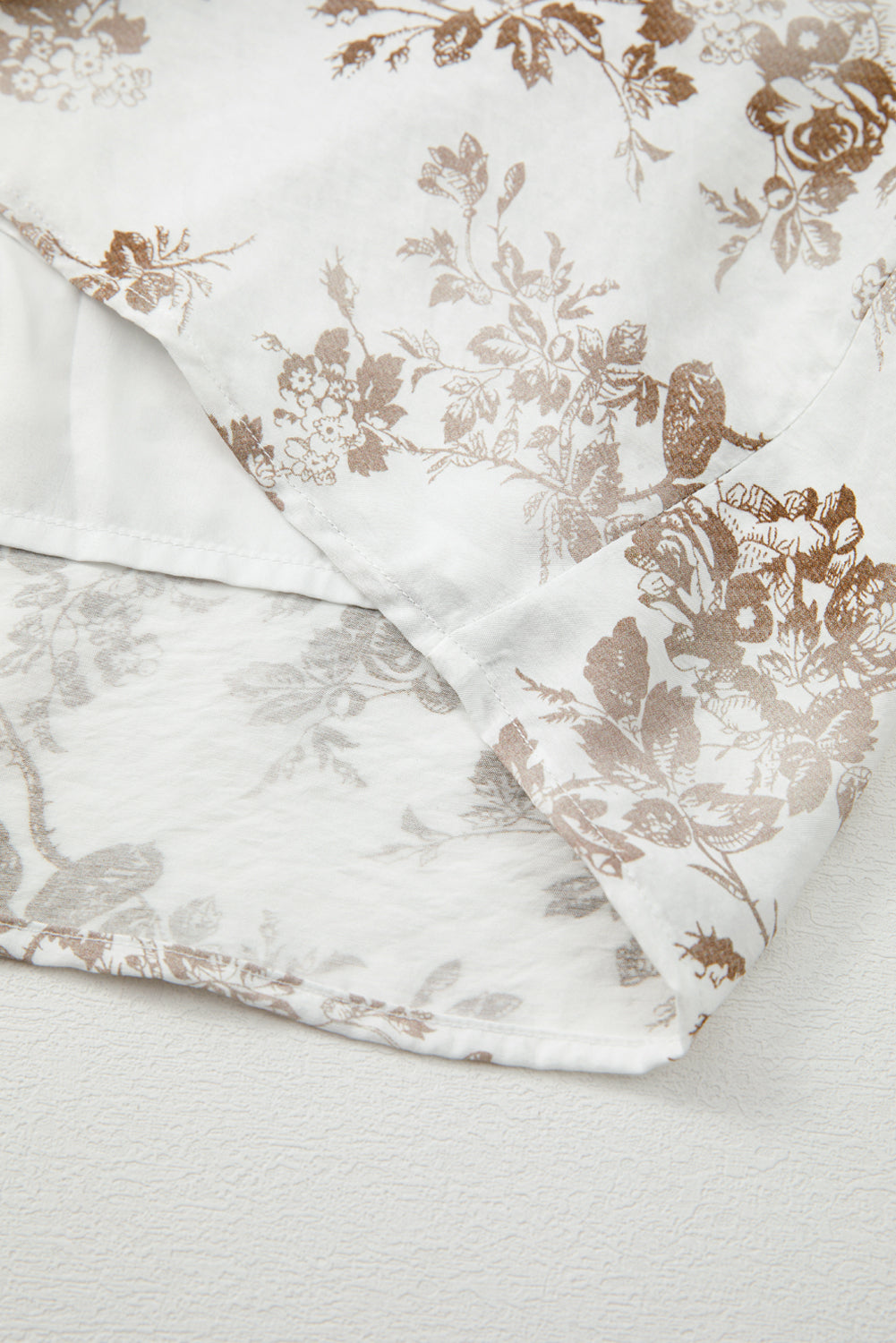 Khaki Floral Puff Sleeve V Neck Buttoned Front Maxi Dress
