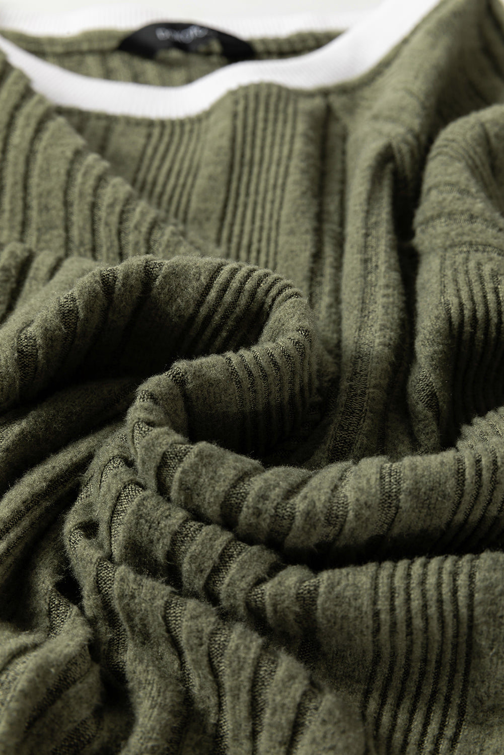 Ribbed Contrast Cuffed Round Neck Long Sleeve T Shirt