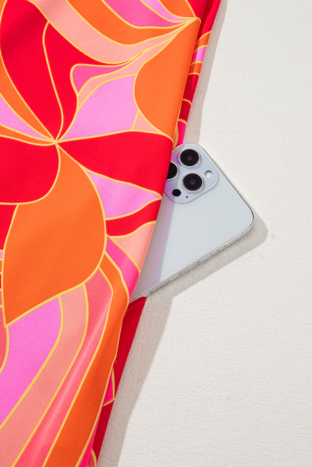 Rose Abstract Printed High Neck Knotted Nape Sleeveless Maxi Dress