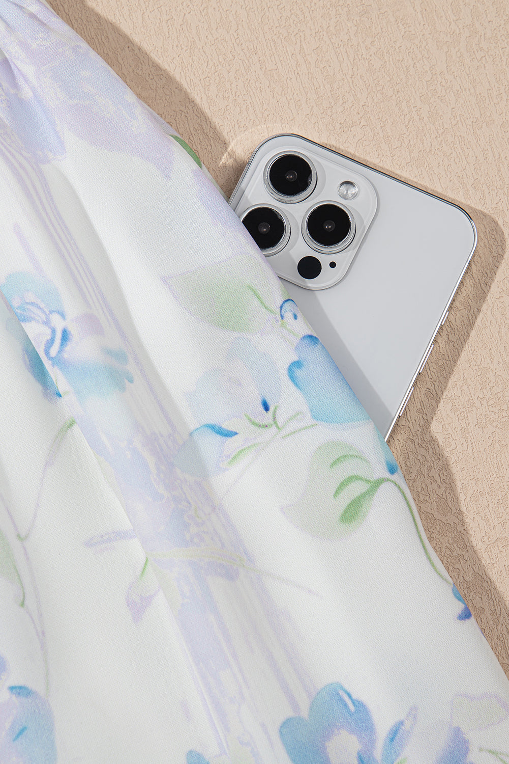 Sky Blue Floral Smocked High Waist Double Ruffle Sleeveless Long Dress