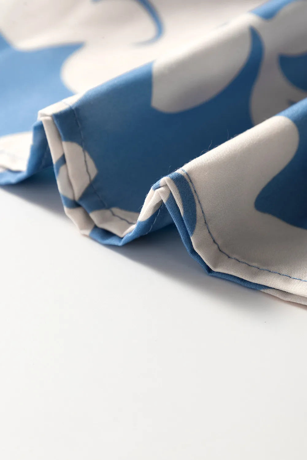 Sky Blue Floral U Neck Flutter Shoulder Tiered Flowy Midi Dress