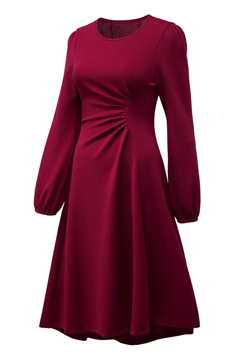 Solid Color Ruched Detail Long Sleeve Midi Dress